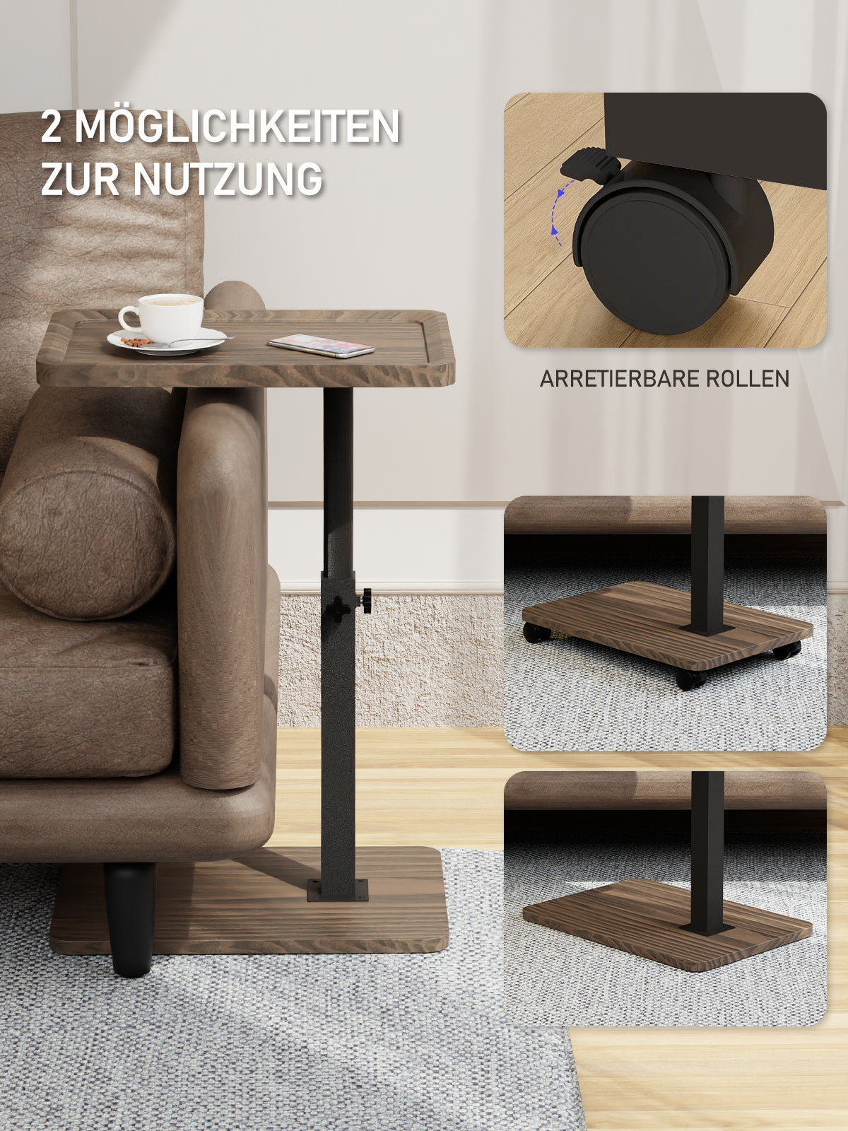 Ob als Sofatisch, Teetisch, Laptop-Tisch oder mobiler Arbeitsbereich, dieser Beistelltisch erfüllt alle Ihre Bedürfnisse. Die flexible Bauweise macht ihn zu einem praktischen Helfer im täglichen Leben, ideal für verschiedene Anwendungen im Wohnzimmer, Büro oder Schlafzimmer.